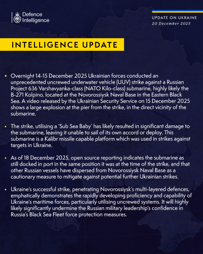 Незважаючи на це, пошкодження, завдані підводному човну, видаються серйозними. За оцінками британської розвідки, він більше не придатний до виходу в море і на деякий час буде виведений з експлуатації.