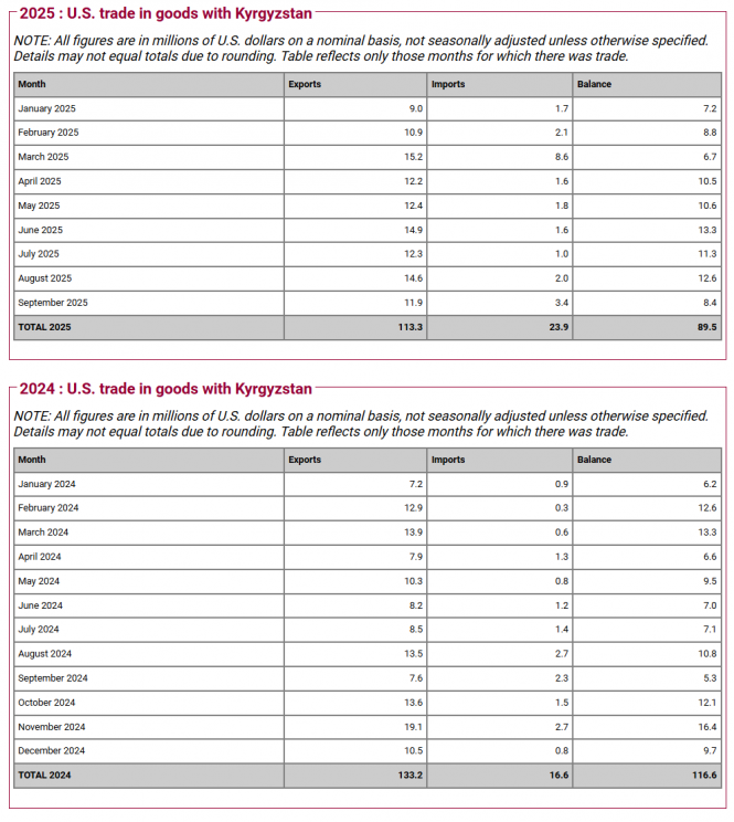 Щось подібне у відсотковому вираженні відбулося і з експортом США до Киргизстану.