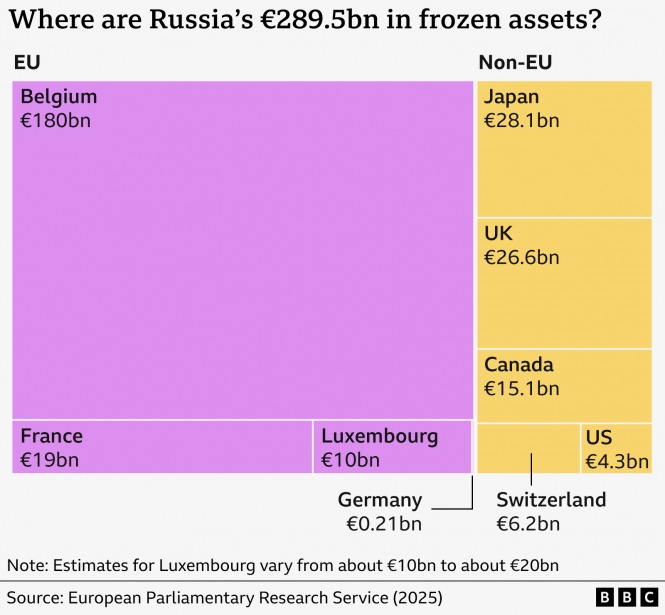 На перший погляд, це рішення здавалося справжнім відступом проукраїнських сил і успіхом тих, хто хоче виконати стратегічні замовлення Трампа/путіна. Трамп/путін (зауважте, що вони мають ідентичну позицію в цьому питанні) хочуть захистити російські активи, заморожені європейськими державами, щоб згодом їх можна було повернути до росії, частину яких ожна уявити як корупційні виплати на користь США. На початку тижня прихильники України в Європі говорили про те, щоб кинути виклик Трампу/путіну і конфіскувати ці активи для фінансування. Ці кошти є значними (оцінюються у понад 200 мільярдів євро), хоча найбільше з них зосереджено саме в Бельгії.