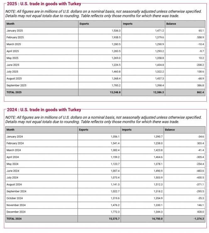 Аналогічно, торгівля США з Туреччиною (де базуються деякі з компаній, санкції проти яких були послаблені минулого тижня) також помітно зросла після того, як Трамп став президентом. У випадку з Туреччиною, американський експорт за Трампа зріс майже на 25% у лютому-вересні 2025 року порівняно з аналогічним періодом 2024 року.