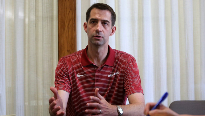 Сенатор Том Коттон (республіканець від штату Арканзас) виступає в офісі газети Arkansas Democrat-Gazette в Літл-Року, 22 серпня 2019 року. (Arkansas Democrat Gazette)