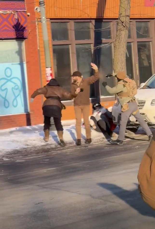 Міністерство внутрішньої безпеки заявило, що чоловіка застрелили після того, як він наблизився до офіцерів з пістолетом. “Офіцери намагалися обеззброїти підозрюваного, але озброєний підозрюваний чинив насильницький опір”, – заявило МВБ. На відео видно, як кілька агентів у масках намагаються повалити чоловіка на землю, після чого лунають постріли (див. покроковий аналіз відео, яке повністю спростовує заяви федеральних посадовців, нижче – iPress).